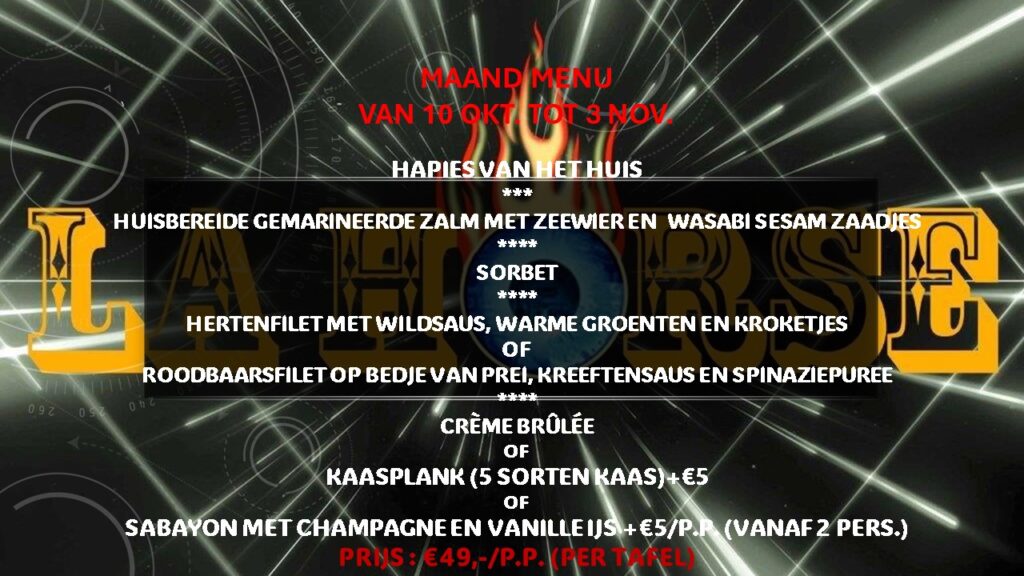- Filet pur met saus naar keuze en verse frietjes €39,-