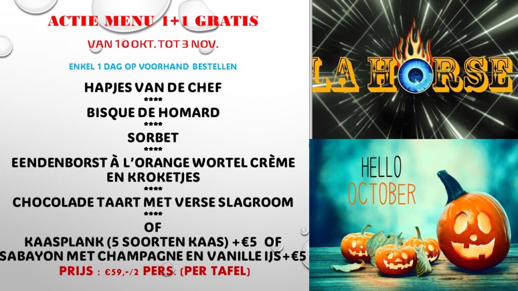 - Kabeljauwhaasje met spinaziepuree en champagnesaus €38,-
